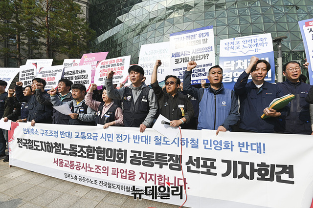 [포토] 전국철도지하철노동조합협의회, 서울교통공사노조 파업지지 및 공동투쟁 선포