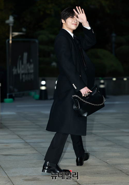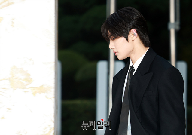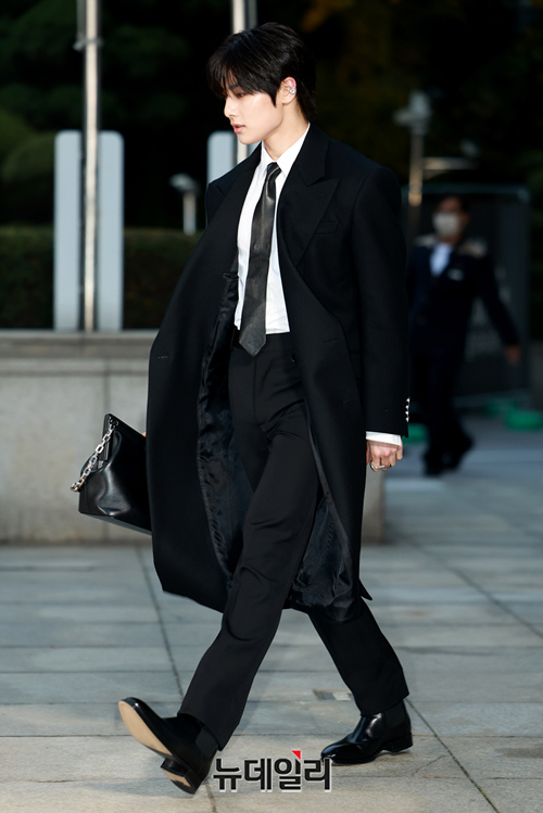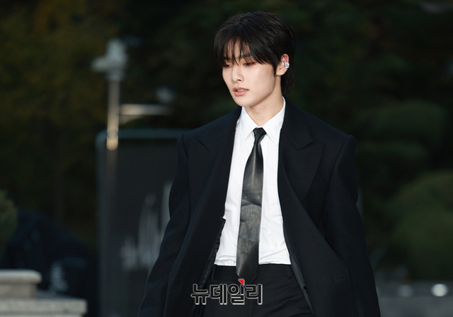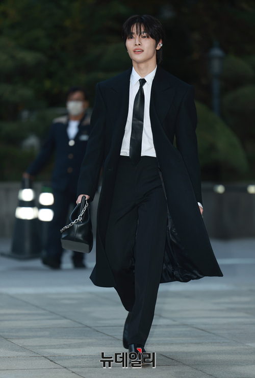 스트레이키즈 아이엔이 1일 오후 서울 강남구 갤러리아 EAST에서 열린 알렉산더 맥퀸 부티크 리오픈 행사에 입장하고 있다.