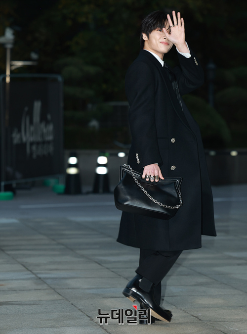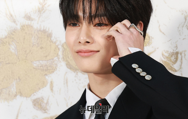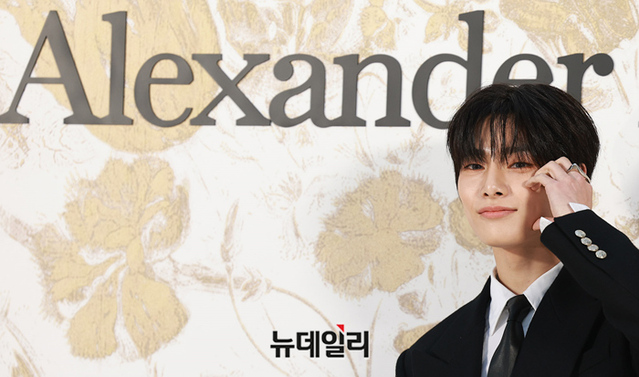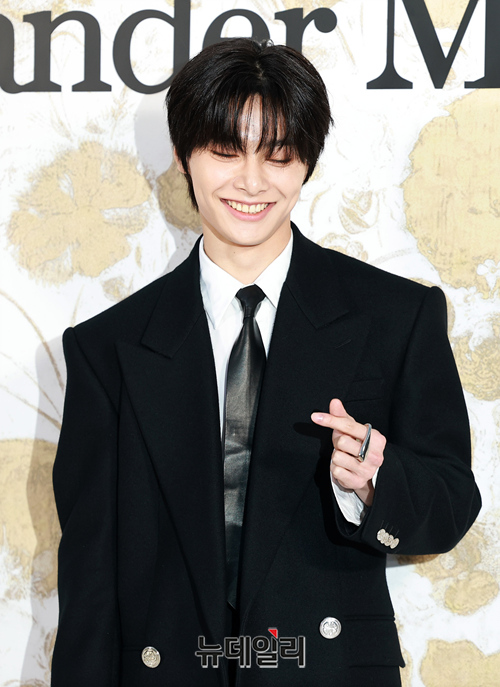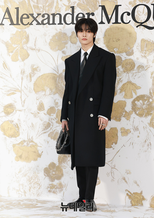 스트레이키즈 아이엔이 1일 오후 서울 강남구 갤러리아 EAST에서 열린 알렉산더 맥퀸 부티크 리오픈 행사에서 포토타임을 갖고 있다.