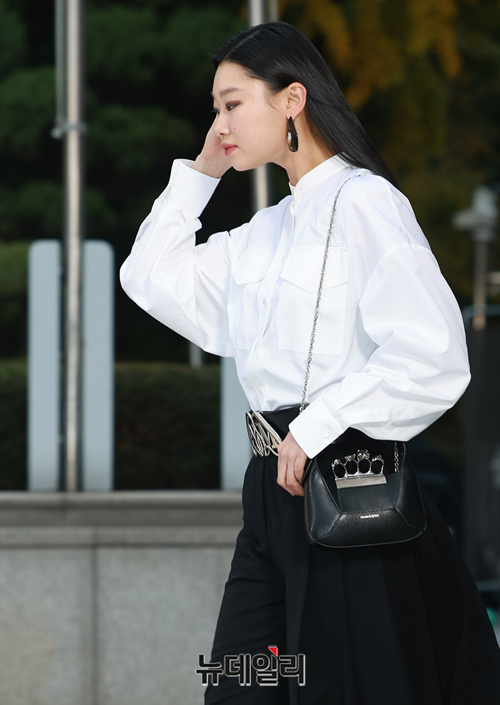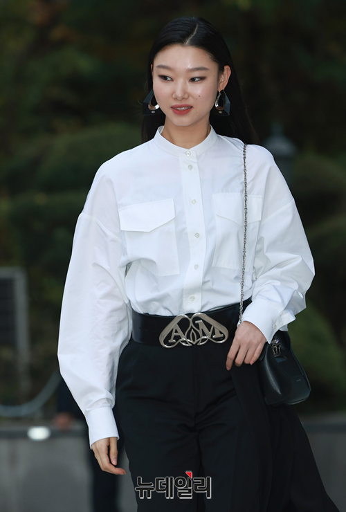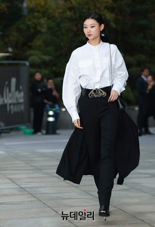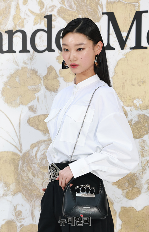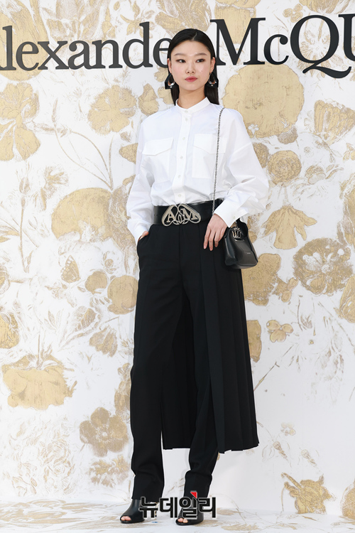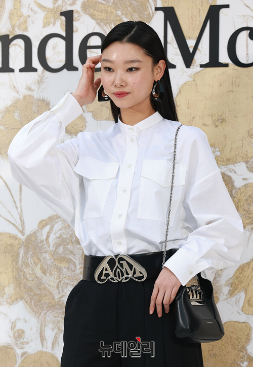 모델 배윤영이 1일 오후 서울 강남구 갤러리아 EAST에서 열린 알렉산더 맥퀸 부티크 리오픈 행사에 참석해 포즈를 취하고 있다.