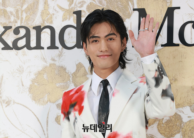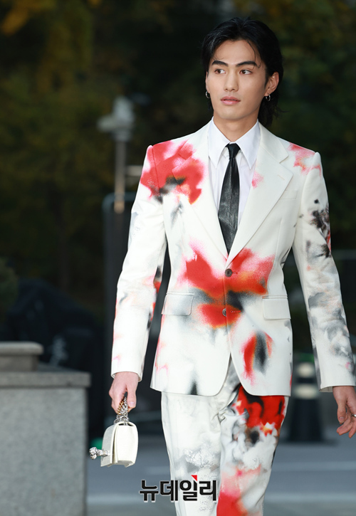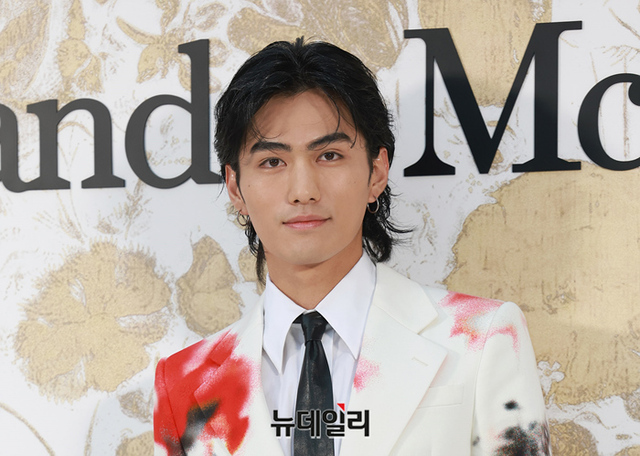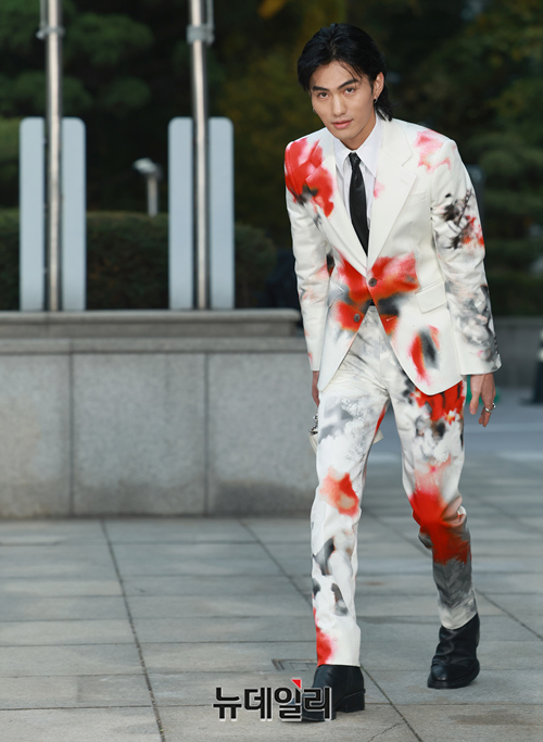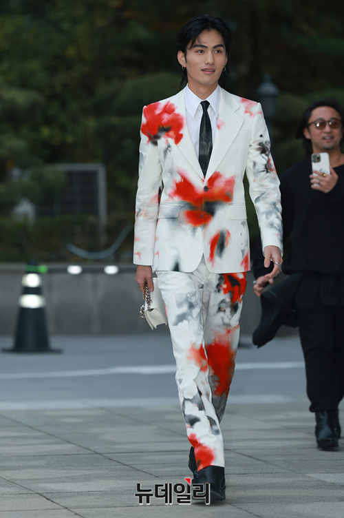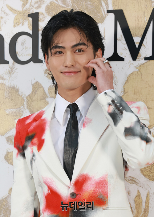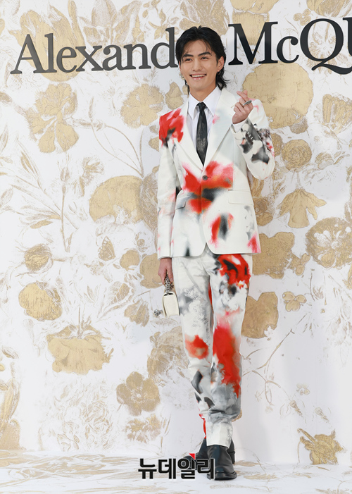 일본배우 오히라 슈조가 1일 오후 서울 강남구 갤러리아 EAST에서 열린 알렉산더 맥퀸 부티크 리오픈 행사에 참석해 포즈를 취하고 있다.