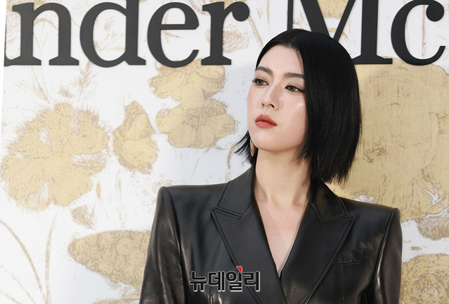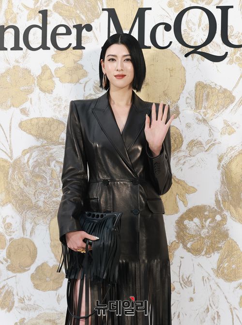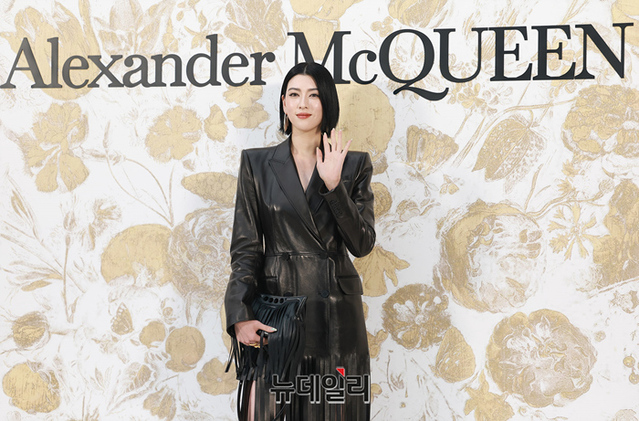 일본배우 미요시 아야카가가 1일 오후 서울 강남구 갤러리아 EAST에서 열린 알렉산더 맥퀸 부티크 리오픈 행사에 참석해 포즈를 취하고 있다.