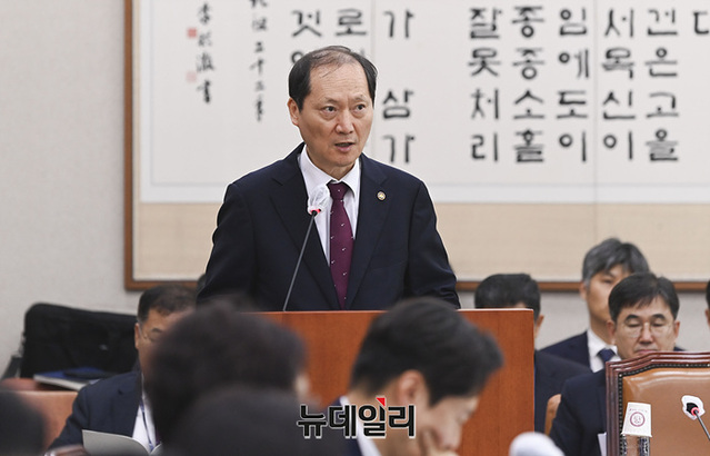 이완규 법제처장이 2일 오후 국회에서 열린 법제사법위원회 전체회의에서 '2024년도 예산안 및 기금운영계획안' 관련 보고를 하고 있다.