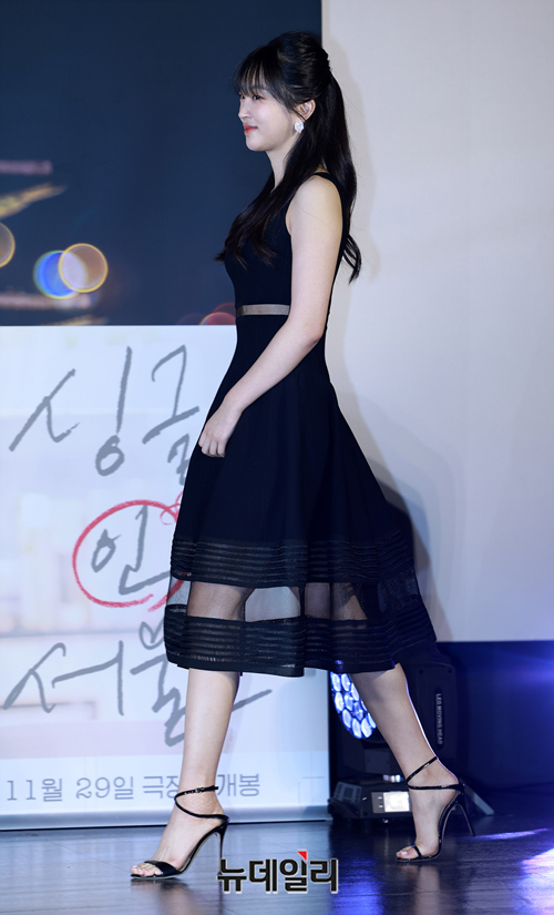 배우 지이수가 3일 오전 서울 광진구 롯데시네마 건대입궁서 열린 영화 '싱글 인 서울(감독 박범수)' 제작보고회에서 인사말을 하고 있다.