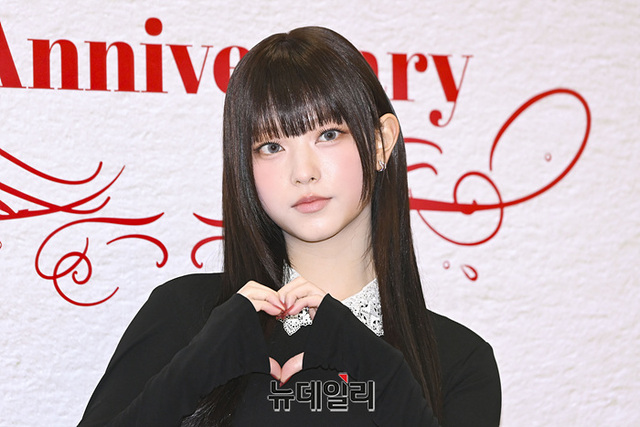걸그룹 뉴진스 해린이 6일 오전 서울 여의도 더현대 서울 'H 빌리지'에서 열린 현대백화점면세점 5주년 기념 팝업 포토월에서 포즈를 취하고 있다.