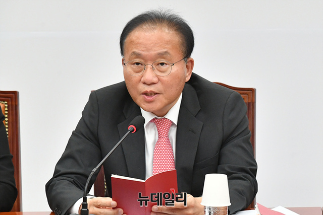 윤재옥 국민의힘 원내대표가 6일 오전 국회에서 열린 최고위원회의에 참석해 모두발언을 하고 있다.