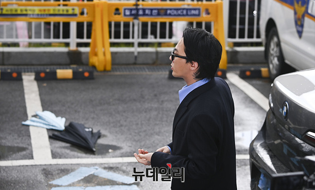 마약 투약 혐의를 받는 가수 지드래곤(본명 권지용)이 6일 오후 인천 논현경찰서로 출석하고 있다. (인천=서성진 기자)