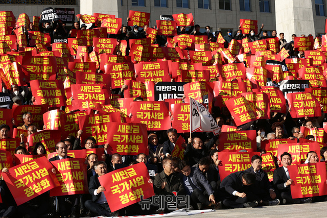 새만금 사업 정상화 촉구 전북인 총궐기대회가 열린 7일 국회 본청 앞에서 열리고 있다.