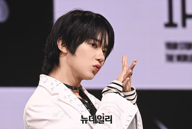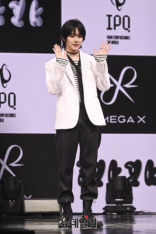 보이그룹 오메가엑스 예찬이 7일 오후 서울 광진구 에스24라이브홀에서 열린 세 번째 미니앨범 '이프 유 노, 유 노(if you know, you know)' 쇼케이스에서 포토타임 갖고 있다.