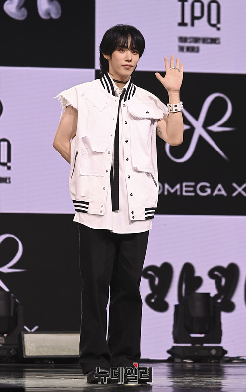 보이그룹 오메가엑스 젠이 7일 오후 서울 광진구 에스24라이브홀에서 열린 세 번째 미니앨범 '이프 유 노, 유 노(if you know, you know)' 쇼케이스에서 포토타임 갖고 있다.