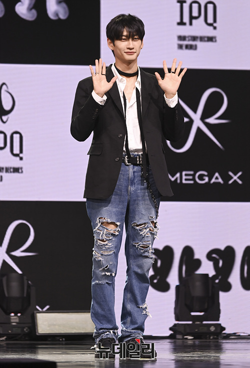 보이그룹 오메가엑스 태동이 7일 오후 서울 광진구 에스24라이브홀에서 열린 세 번째 미니앨범 '이프 유 노, 유 노(if you know, you know)' 쇼케이스에서 포토타임 갖고 있다.