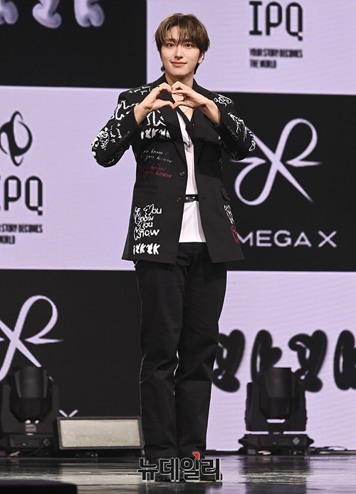보이그룹 오메가엑스 세빈이 7일 오후 서울 광진구 에스24라이브홀에서 열린 세 번째 미니앨범 '이프 유 노, 유 노(if you know, you know)' 쇼케이스에서 포토타임 갖고 있다.