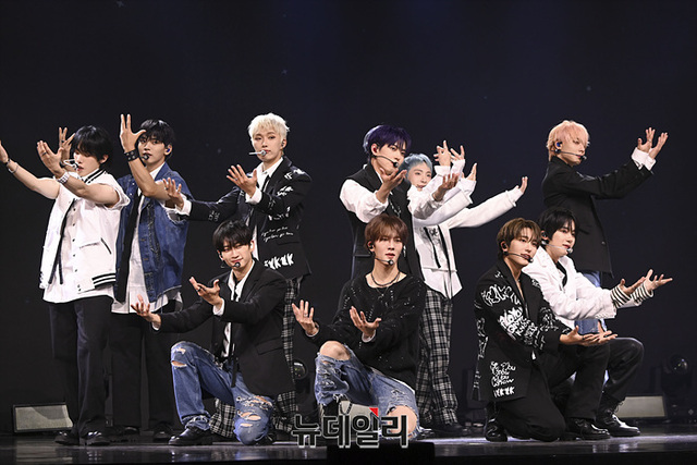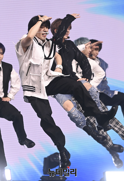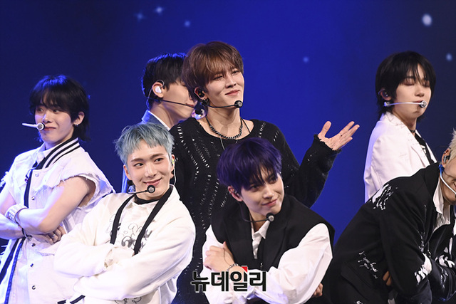보이그룹 오메가엑스가 7일 오후 서울 광진구 에스24라이브홀에서 열린 세 번째 미니앨범 '이프 유 노, 유 노(if you know, you know)' 쇼케이스에서 무대를 선보이고 있다.