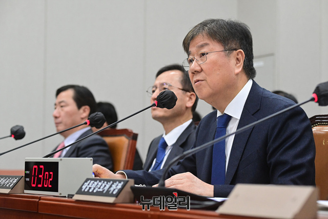 김대기 대통령 비서실장이 10일 국회에서 열린 운영위원회 전체회의에서 의원 질문에 답하고 있다.