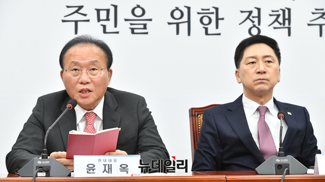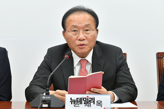 윤재옥 국민의힘 원내대표가 13일 오전 국회에서 열린 최고위원회의에 참석해 모두발언을 하고 있다.