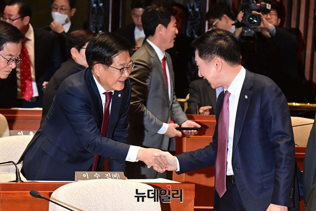 [포토] 의원총회 참석하는 김기현 국민의힘 대표