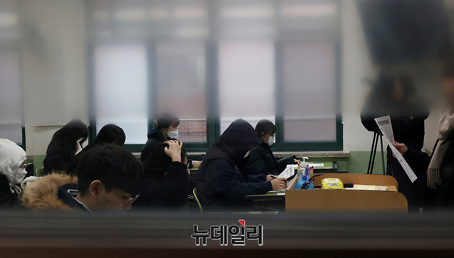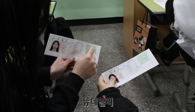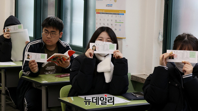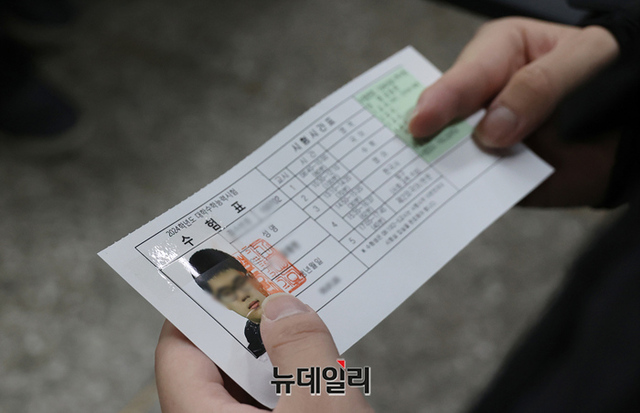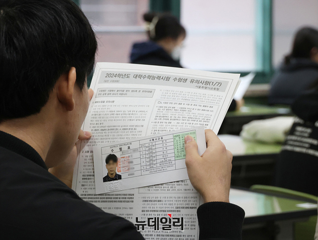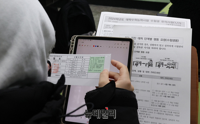 2024학년도 대학수학능력시험 예비소집일인 15일 서울 구로구 영신고등학교에서 수험생이 수능 수험표를 받고 있다. (사진=공동취재단)