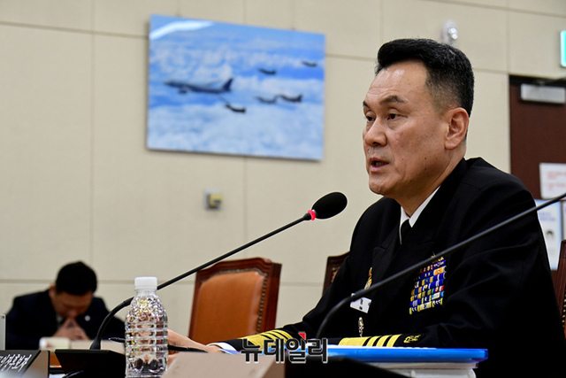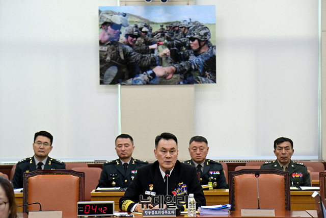 김명수 합동참모본부 의장 후보자가 15일 오전 국회에서 열린 인사청문회에서 의원들의 질문에 답하고 있다.