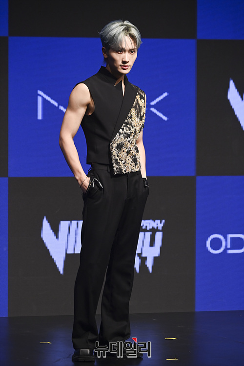 보이그룹 엔티엑스(NTX) 형진이 15일 오후 서울 강남구 성암아트홀에서 열린 첫 앨범 '오드아워(ODD HOUR)' 발매 기념 쇼케이스에서 포즈를 취하고 있다.