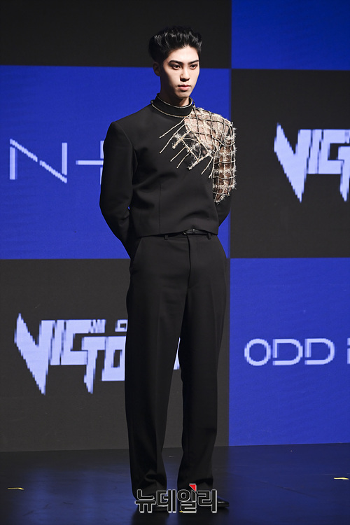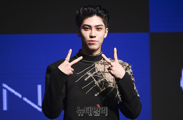 보이그룹 엔티엑스(NTX) 윤혁이 15일 오후 서울 강남구 성암아트홀에서 열린 첫 앨범 '오드아워(ODD HOUR)' 발매 기념 쇼케이스에서 포즈를 취하고 있다.
