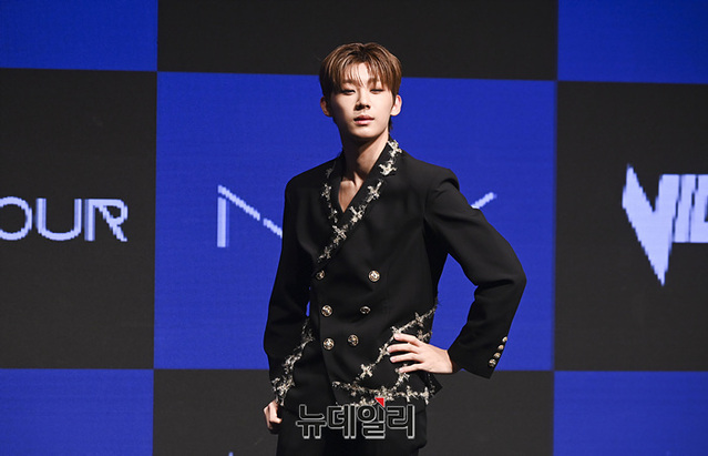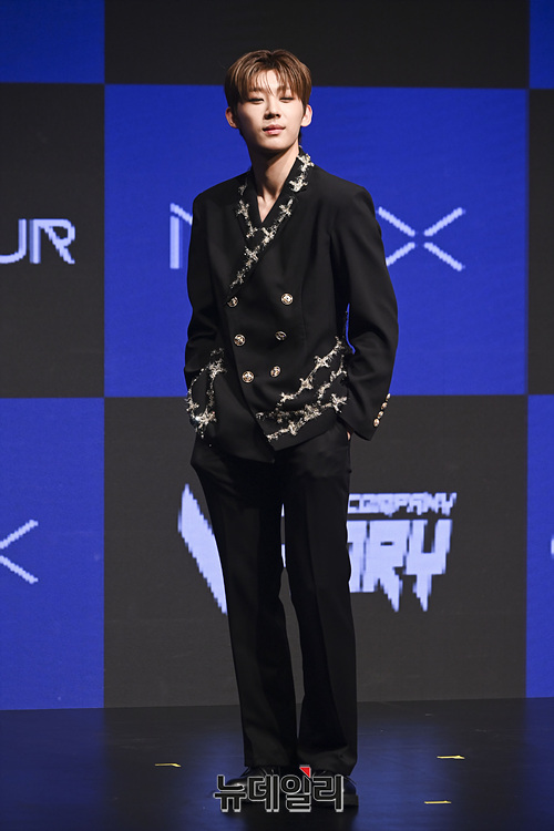 보이그룹 엔티엑스(NTX) 호준이 15일 오후 서울 강남구 성암아트홀에서 열린 첫 앨범 '오드아워(ODD HOUR)' 발매 기념 쇼케이스에서 포즈를 취하고 있다.