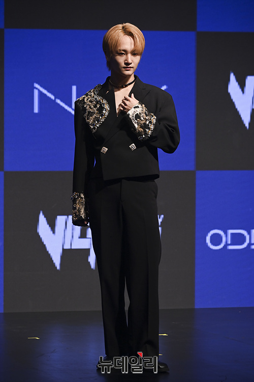 보이그룹 엔티엑스(NTX) 은호가 15일 오후 서울 강남구 성암아트홀에서 열린 첫 앨범 '오드아워(ODD HOUR)' 발매 기념 쇼케이스에서 포즈를 취하고 있다.