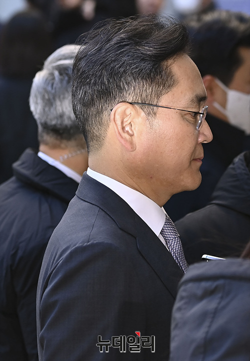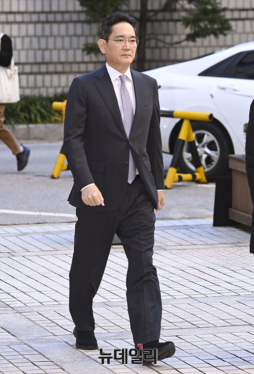 이재용 삼성전자 회장이 17일 오전 서울 서초구 중앙지법에서 열린 '자본시장과금융투자업에관한법률위반 혐의' 결심 공판에 출석하고 있다.