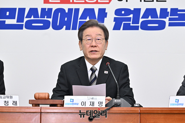 이재명 더불어민주당 대표가 20일 국회에서 열린 최고위원회의에 참석해 모두발언을 하고 있다.