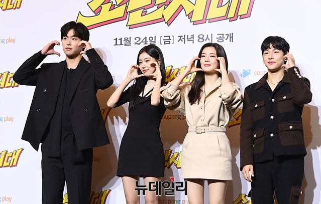 배우 이시우(왼쪽부터), 강혜원, 이선빈, 임시완이 20일 오전 서울 강남구 조선팰리스에서 열린 쿠팡플레이 시리즈 '소년시대' 제작발표회에서 포즈를 취하고 있다.