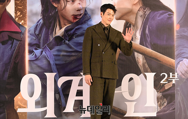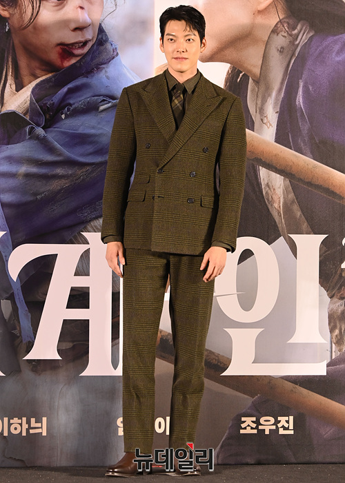 배우 김우빈이 22일 오전 서울 CGV 용산아이파크몰에서 열린 영화 '외계+인 2(감독 최동훈)' 제작보고회에서 포즈를 취하고 있다.