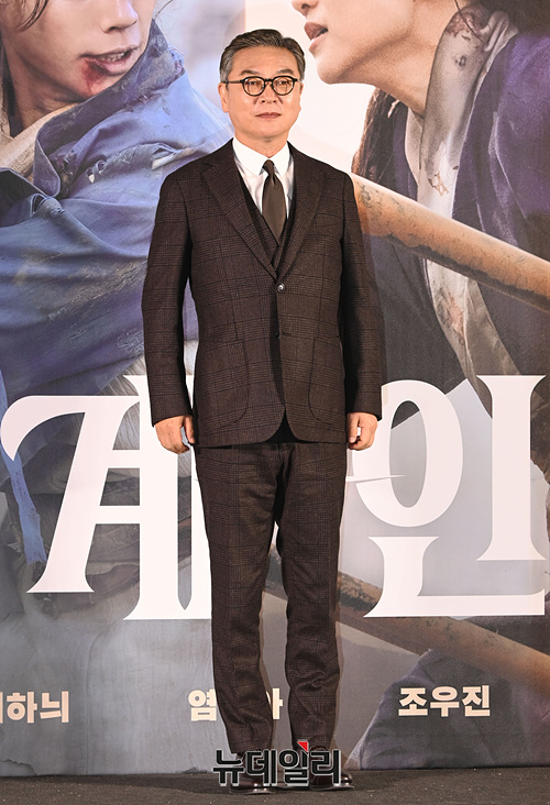 배우 김의성이 22일 오전 서울 CGV 용산아이파크몰에서 열린 영화 '외계+인 2(감독 최동훈)' 제작보고회에서 포즈를 취하고 있다.