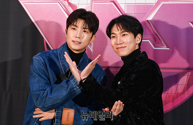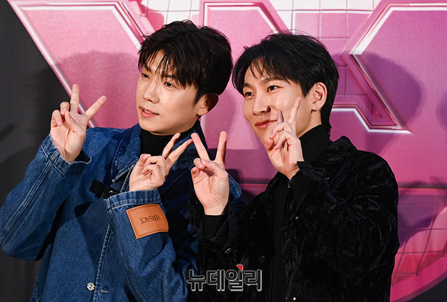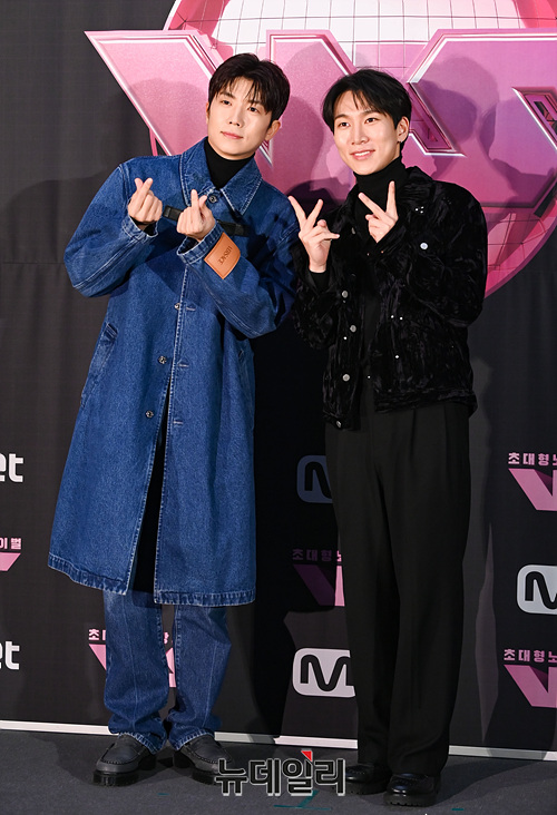 가수 장우영과 서은광이 22일 오후 서울 CGV 청담시네시티에서 열린 엠넷 예능 '브이에스(VS)' 신곡 음원 쇼케이스에서 포즈를 취하고 있다.