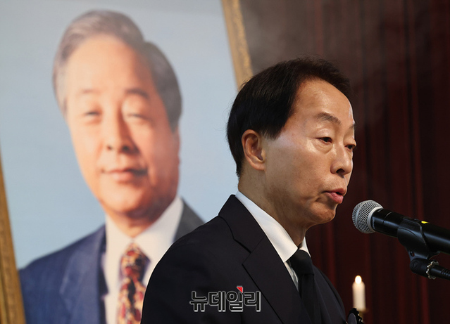 김현철 김영삼대통령기념재단 이사장이 22일 오후 서울 동작구 국립서울현충원 현충관에서 열린 김영삼 대통령 서거 8주기 추모식에서 유가족 인사를 하고 있다.