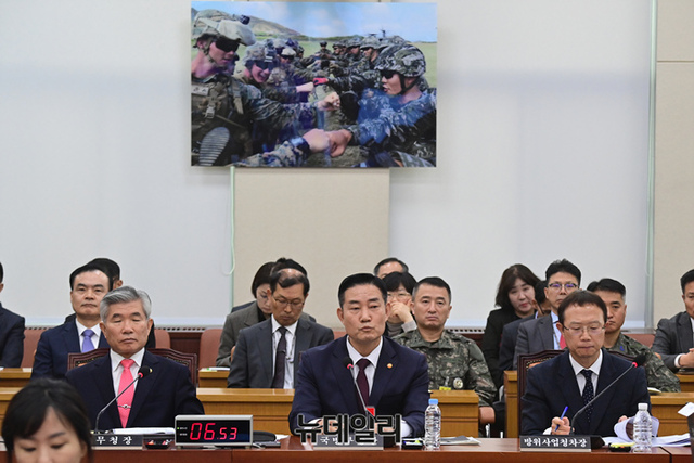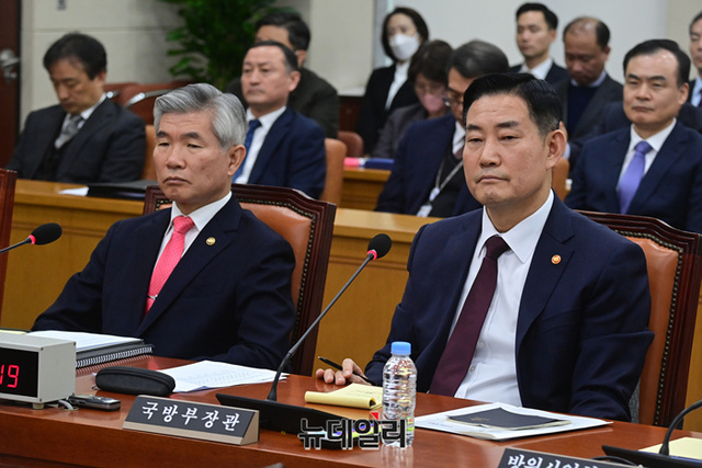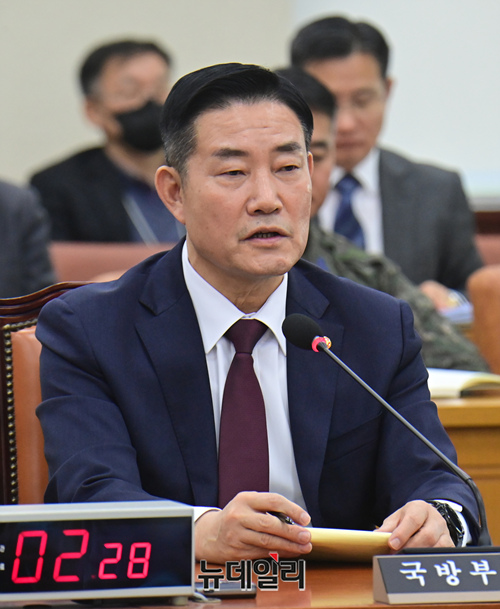 신원식 국방부 장관이 23일 국회에서 열린 국방위원회 전체회의에서 의원들의 질문에 답하고 있다.