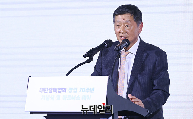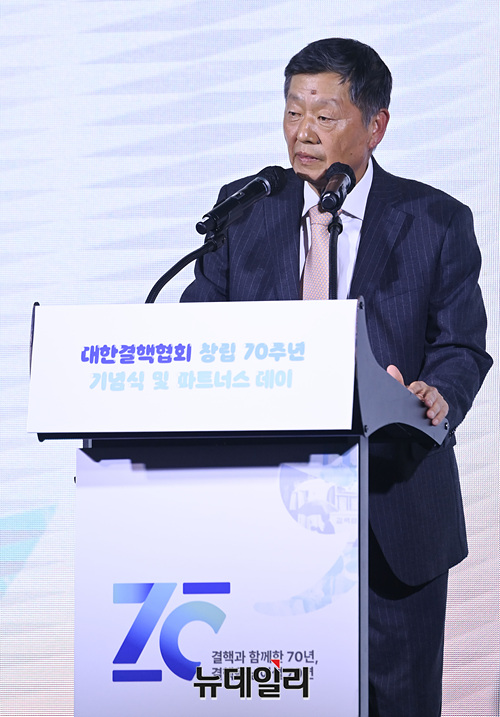 경만호 대한결핵협회 명예회장이 23일 오후 서울 여의도 콘래드 호텔에서 열린 '대한결핵협회 창립 70주년 기념식 및 파트너스 데이'에서 기념사를 하고 있다.