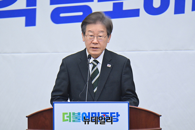이재명 더불어민주당 대표가 23일 국회에서 열린 의원총회에서 모두발언을 하고 있다.