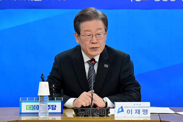 이재명 더불어민주당 대표가 27일 서울 여의도 중앙당사에서 열린 윤석열 정부 '지방재정 파탄 해결'을 위한 민주당 지방정부 긴급 대책회의에서 모두발언을 하고 있다.