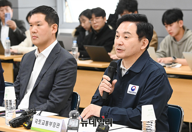 이날 간담회에는 원희룡 국토부 장관, 이한준 LH 사장, 허윤홍 GS건설 사장, 입주자 대표 등이 참석해 '인천검단 AA13블록 보상 기본방향에 대한 합의서'에 서명했다. (인천=서성진 기자)