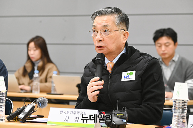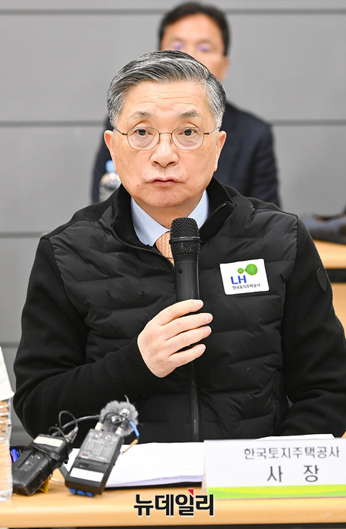 이한준 LH 사장이 28일 오후 인천 서구 LH검단사업단에서 열린 '검단AA13 입주예정자 현장간담회'에서 발언하고 있다.