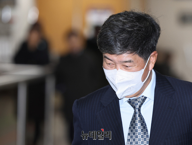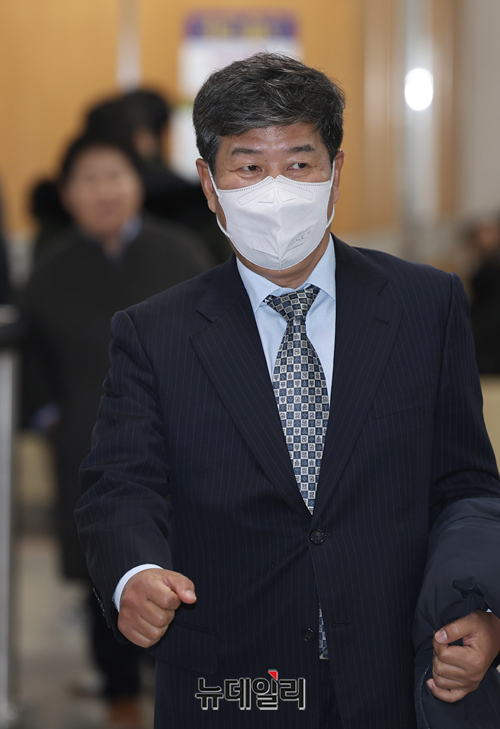 백원우 전 청와대 민정비서관이 29일 오후 서울 서초구 중앙지법에서 열린 '울산시장 선거개입·하명수사' 1심 선고 공판에 입장하고 있다. 2020년 1월 재판이 시작된지 약 3년 10개월 만의 선고다.