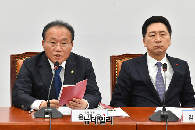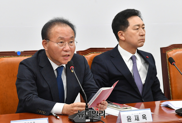 [포토] 현안 관련 발언하는 윤재옥 국민의힘 원내대표