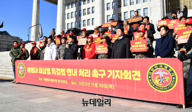 [포토] 해병대 채상병 특검법 기자회견 참석한 이준석