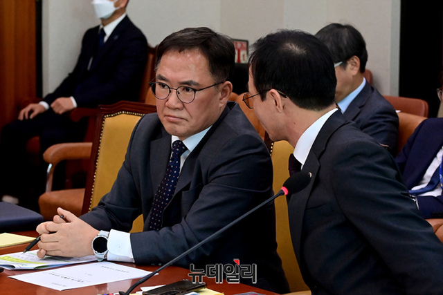 김오진 국토부 제1차관과 배원국 제2차관이 30일 오전 국회에서 열린 국토교통위원회 전체회의에서 의원 질의에 답하고 있다.