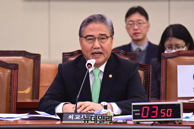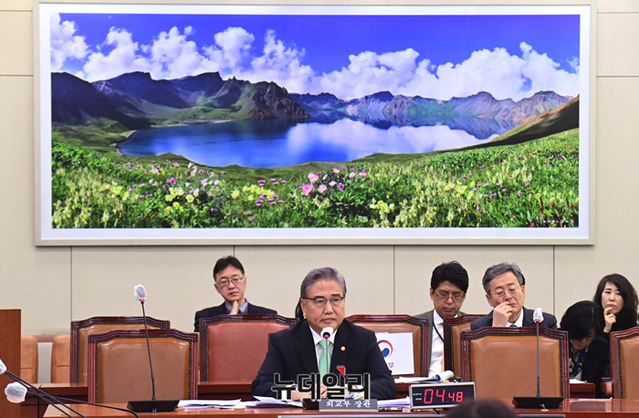박진 외교부 장관이 30일 오전 국회에서 열린 외교통일위원회 전체회의에서 의원의 질의에 답하고 있다.