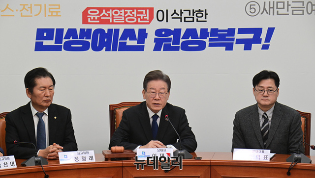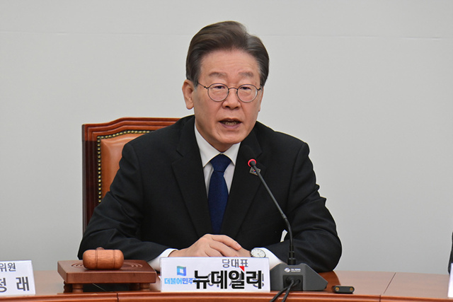 이재명 더불어민주당 대표가 1일 오전 국회에서 열린 최고위원회의에서 모두발언을 하고 있다.