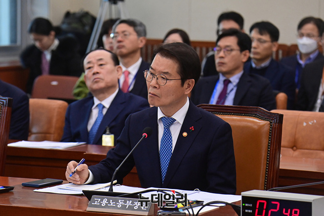 이정식 고용노동부 장관이 1일 오전 국회 환경노동위원회에서 열린 '산업재해 관련 청문회'에 출석해 의원들의 질의를 듣고 있다.