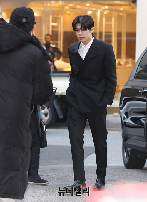 투모로우바이투게더 연준이 1일 오후 서울 강남구 청담동에 오픈한 니치향수 '브랜드 푸에기아 1833' 플래그십 매장에 입장하고 있다.