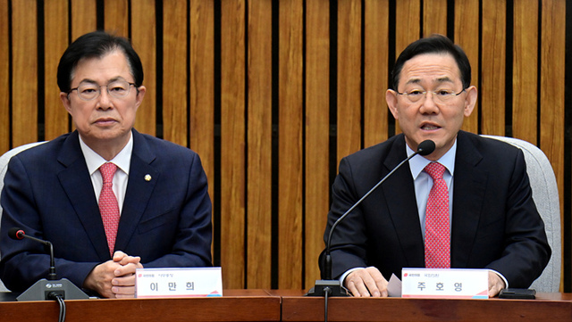 주호영 국민의힘 의원이 4일 오전 국회에서 열린 대구시 군부대 이전을 위한 당정협의회에서 발언을 하고 있다.