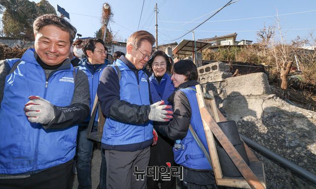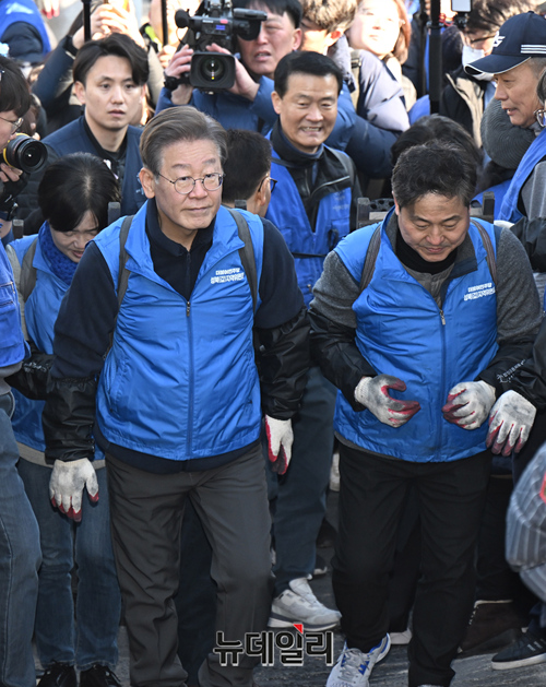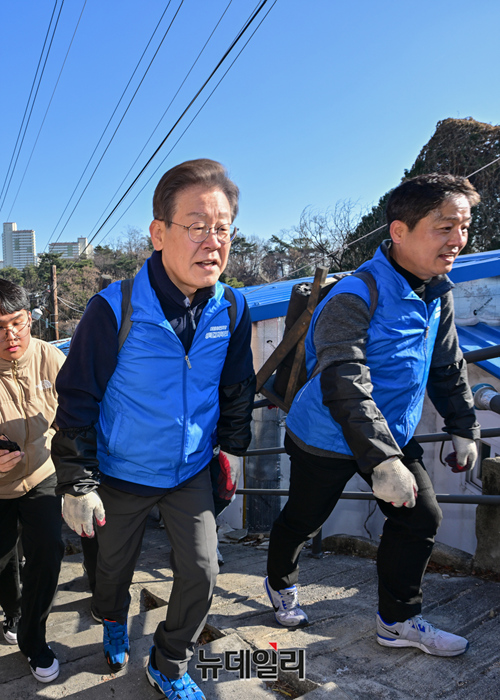 이재명 더불어민주당 대표가 4일 오전 서울 성북구 정릉동 일원에서 연탄 나눔 봉사활동을 하고 있다.