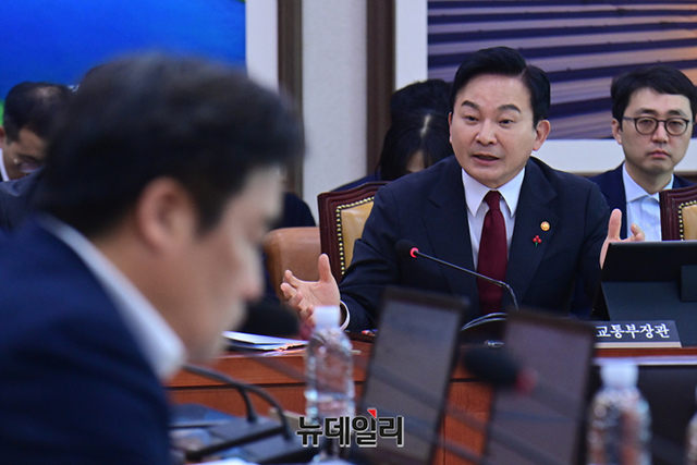 원희룡 국토교통부 장관이 5일 오전 국회 국토교통위원회 전체회의에 출석해 의원들의 질문에 답하고 있다.